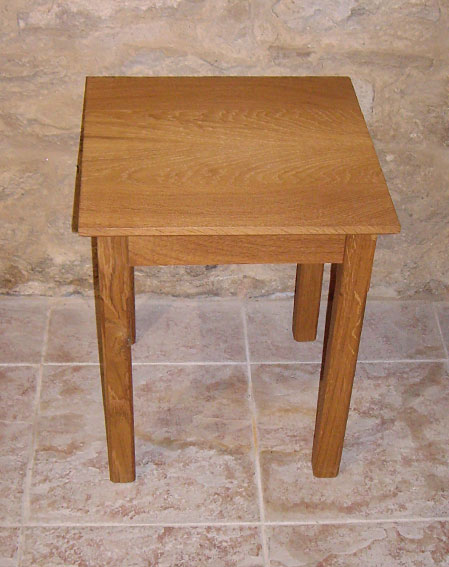 A pair of solid oak tables with a chamfer on the under side of the top and on each side of the legs. Traditionally built with mortice and tennon joints.