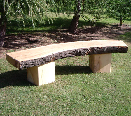 Chunky green oak bench which will develop lots of character over time. Designed for leaving in the idyllic spot in the garden. These are made to order and vary in specification in terms of the length and thickness.